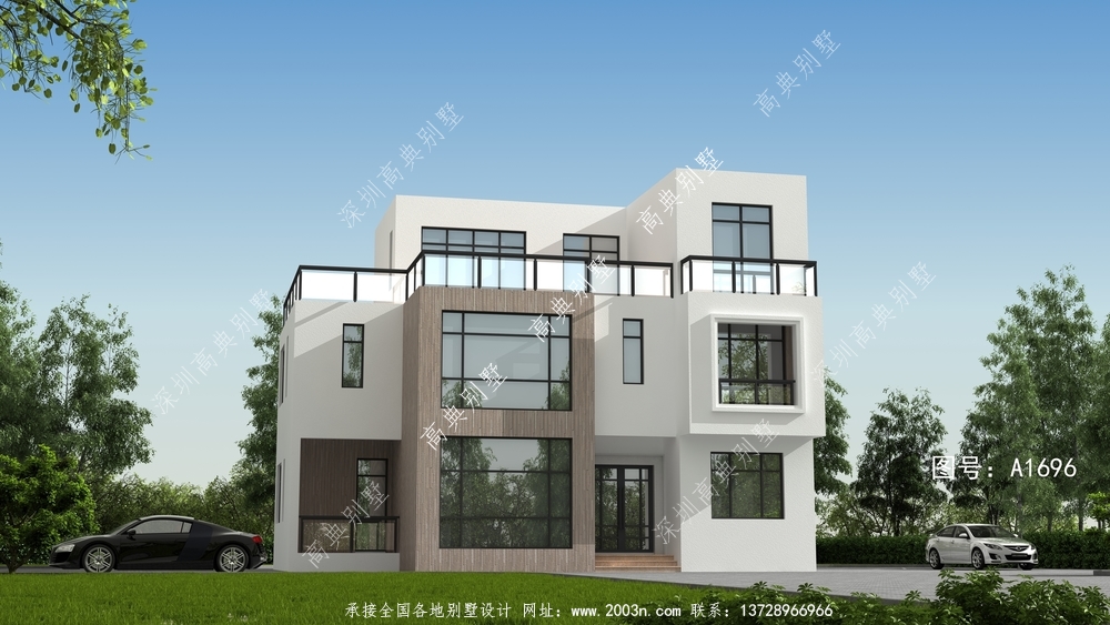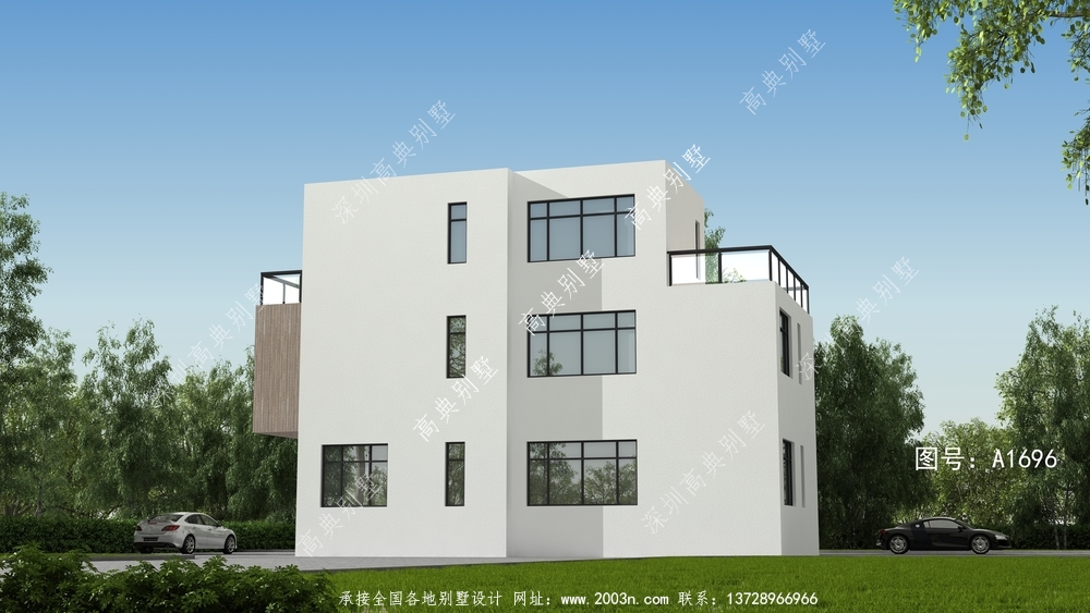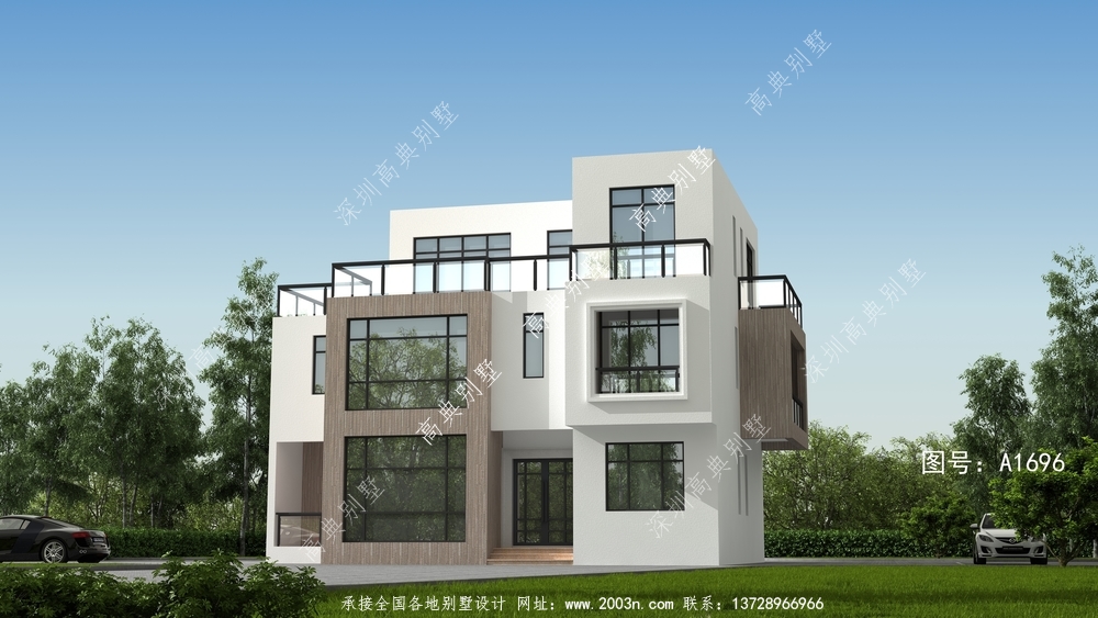 引领时尚潮流的现代风格三层平屋顶别墅