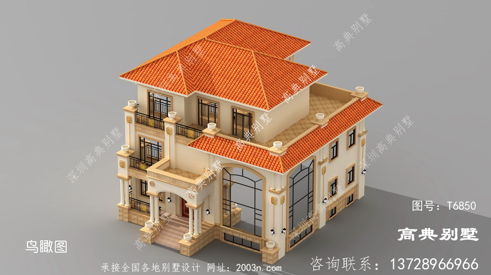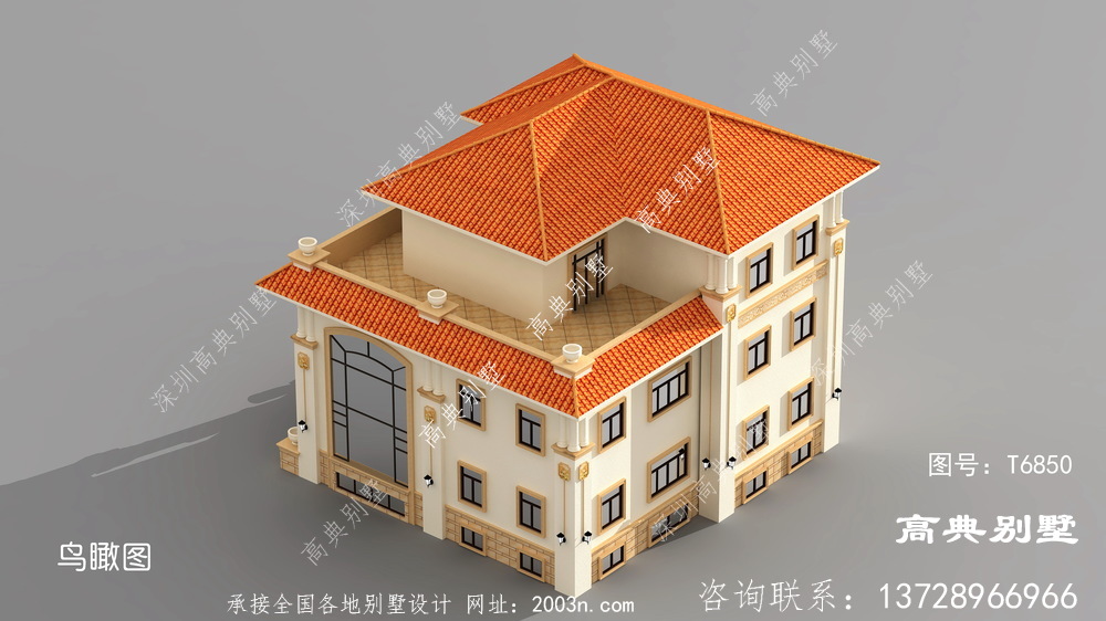 欧式风格豪华三层复式别墅设计图纸效果图