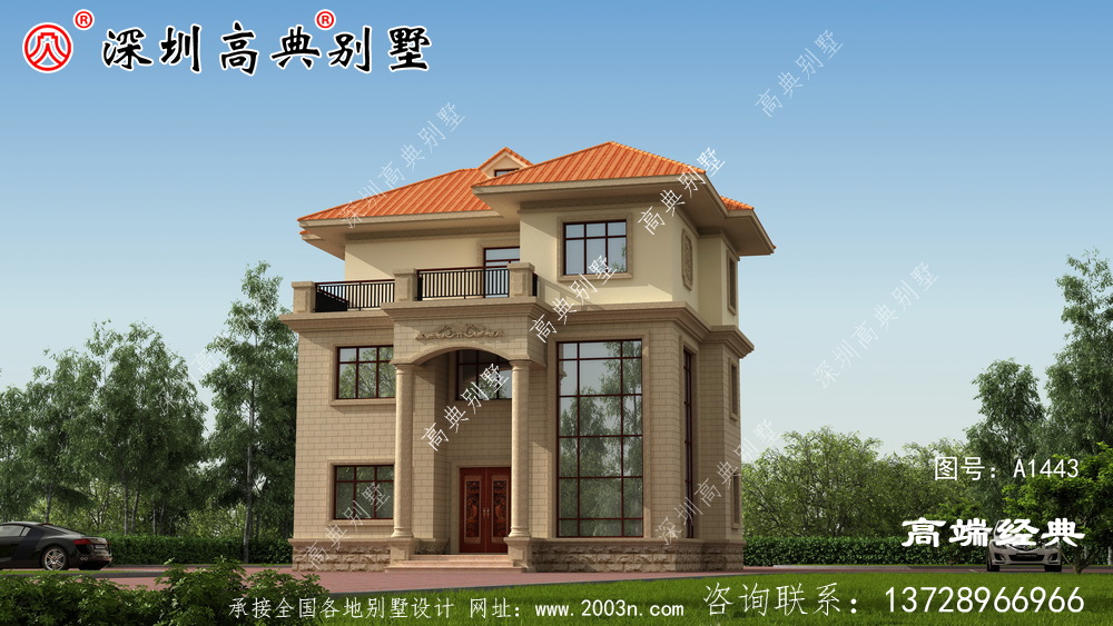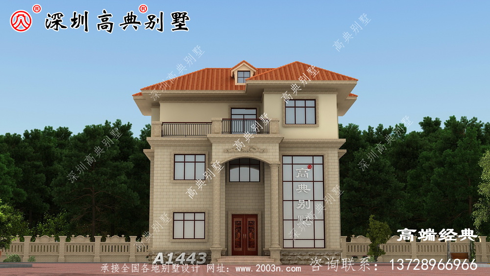 A1443号别墅设计图纸及效果图介绍: