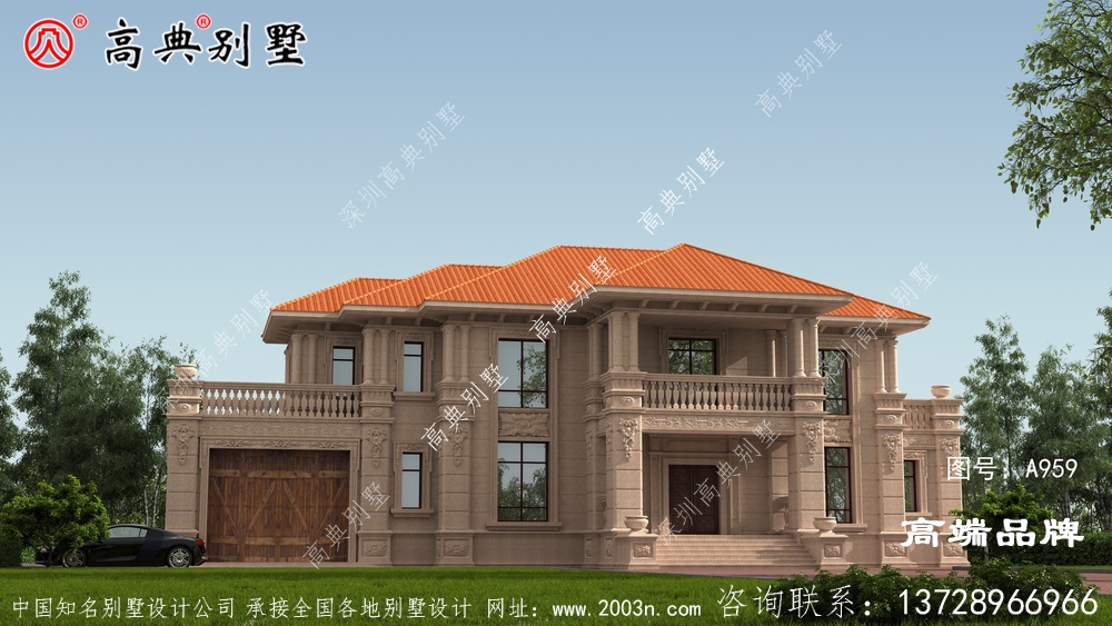 二楼小楼设计户型经典醒目,外观简洁大气,经典欧式风格,浅黄色外墙,棕色面砖,橘色坡屋顶,经典过时,外观线条流畅,非常适合居住。
